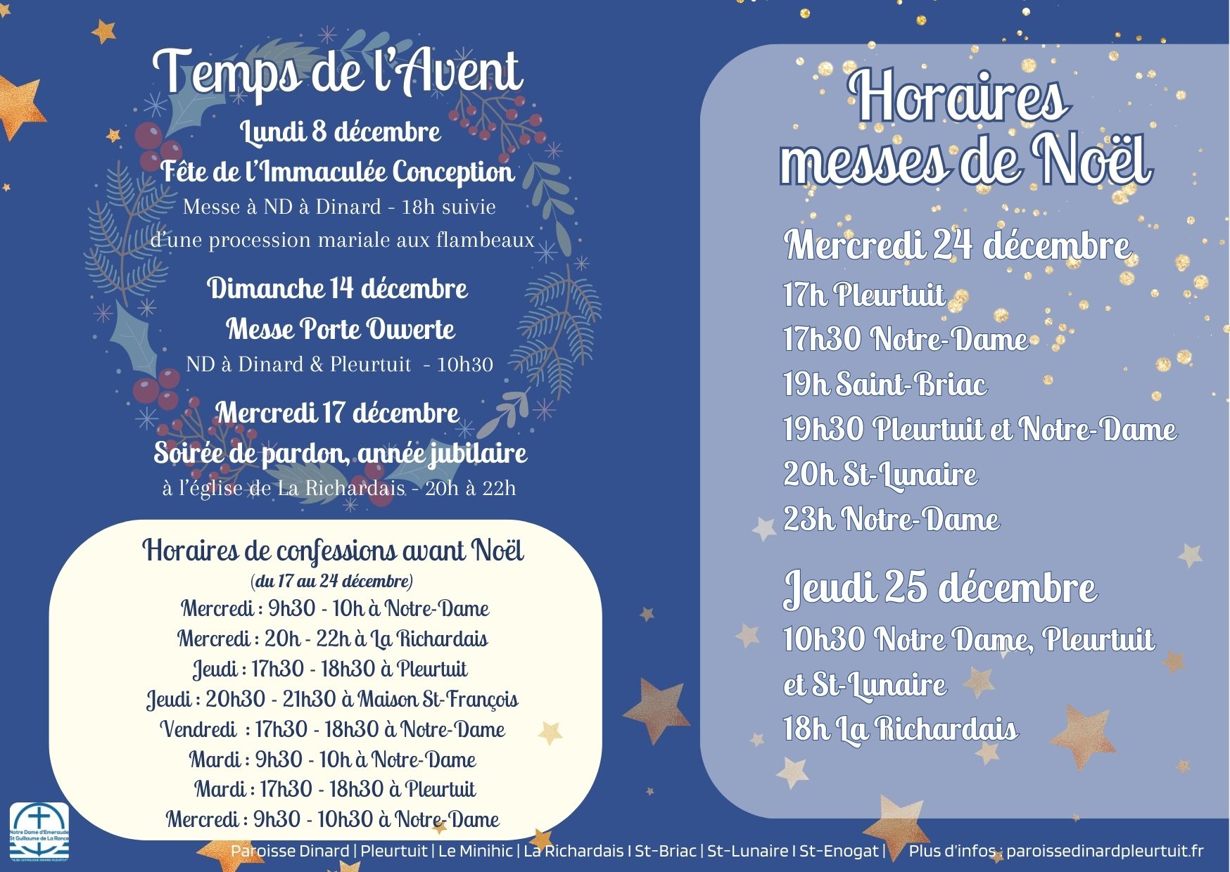 Carte Horaires de Noël - Paroisse Dinard-Pleurtuit